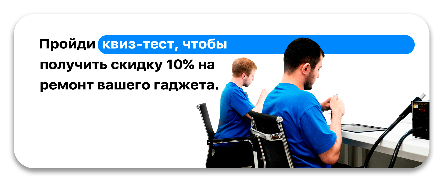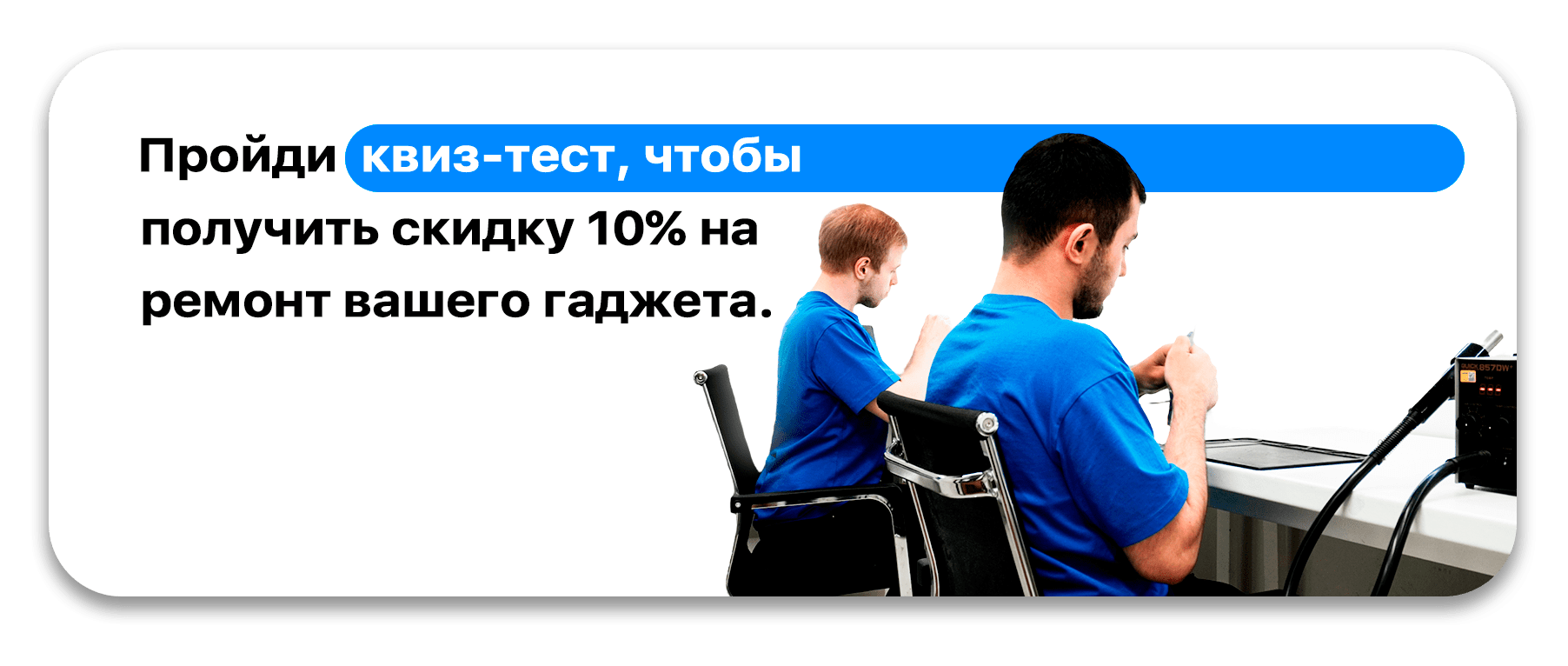 Пройди квиз-тест, чтобы получить скидку 10% на ремонт вашего гаджета.